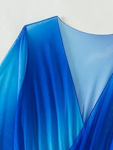 Long sleeve surplice neck drawstring side semi-sheer cover up romper