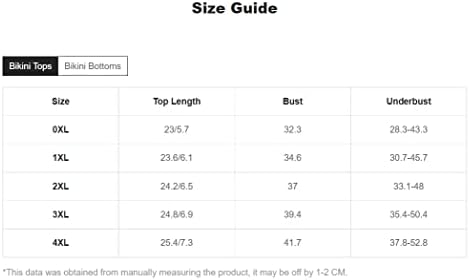 4X-Large Plus: Top Length: 25.4/7.3″, Bust: 41.7″, Underbust: 37.8-52.8″, Bottoms Length: 15.4″, Waist Size: 37.8-55.9″, Hip Size: 44.5″