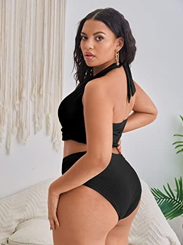 MakeMeChic Women’s Plus Size 2 Piece Bathing Suits Ribbed Halter High Waisted Bikini Swimsuit