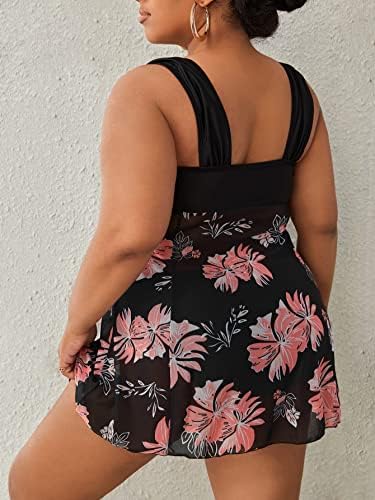 MakeMeChic Women’s Plus Size Tankini Swimsuit Plant Print Two Piece Bathing Suit