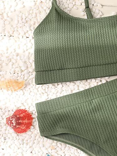 Feature: rib knit, high waist bikini, solid swimsuit women