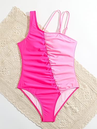Milumia Girl’s Color Block One Piece Swimsuit Ruched Asymmetrical Neck Bathing Suit