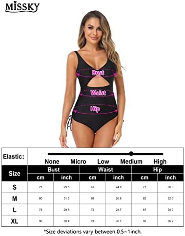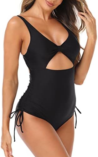 MISSKY Women’s One Piece Swimsuits Drawstring Cut Out Lace Up Swimwear Tie Front Tummy Control Bathing Suits Monokini