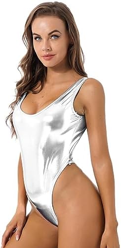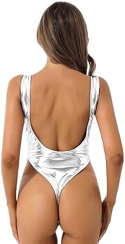 MSemis Women’s Metallic One-Piece High Cut Low Back Thong Monokini Swimsuit Bathing Suit Bodysuit