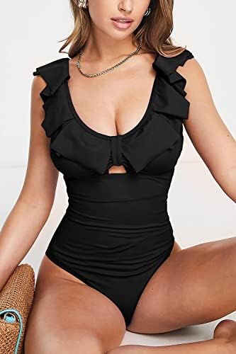 Features: Backless, Removable Padded, Frill Trims and Tie, Back Snap Closure, High Waisted, Tummy Control, Full Coverage, High Cut Monokini, One Piece Swimsuit