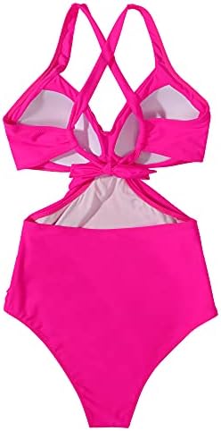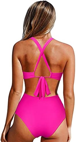 OMKAGI Women Front Crisscross One Piece Swimsuit V Neck Mesh Bathing Suit Tummy Control Monokini
