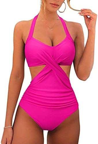 Criss Cross Swimsuits for Women Push Up, cut out one piece bathing suits with mesh color block design, slimming tummy control one piece swimsuits with adjustable spaghetti straps