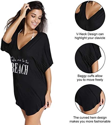 Multipurpose: V-neck cover ups for swimwear women, letters print, T-shirt style of beach bathing suit cover up for women, comfortable to wear. Casual beach shirts for women are the best choice for your vacation.