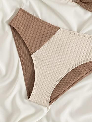 OYOANGLE Girl’s 2 Piece Colorblock Ring Linked Bikini Swimsuit Ribbed Knit Bathing Suit