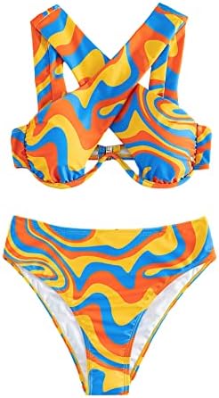 Design: All over print, criss cross, high waist, removable padding, 2 pieces set