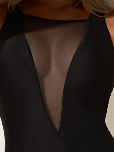 Feature: one piece swimsuit for women, sleeveless, contrast mesh, deep v neck, backless, spaghetti straps
