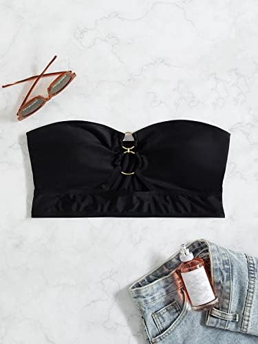 OYOANGLE Women’s Cut Out Ring Linked Bandeau Bikini Top Strapless Swimsuit Bathing Suit Tops