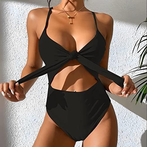 Women Sexy One Piece Bathing Suit Tie Knot Front Cut Out Swimsuit
