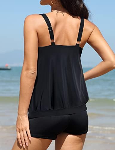 Septangle Tankini Swimsuits for Women Two Piece Bathing Suits for Tummy Control Blouson Swim Tank Top with Short Swimwear