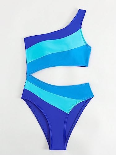 Features: one piece swimsuit for women, one shoulder, cut out, color block, removable padding