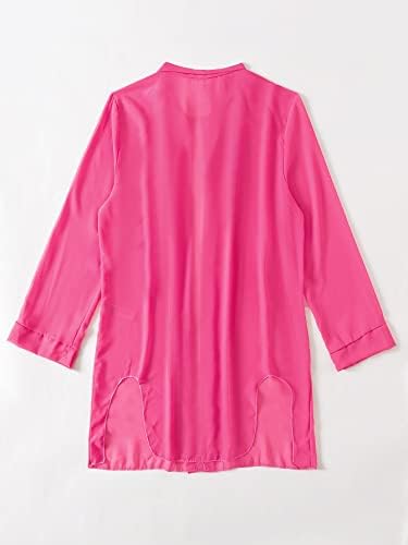 Features: sheer, see through, button through, collar neck, long sleeve, cut out split hem, open front kimono cover up, beach shirt dress, beachwear