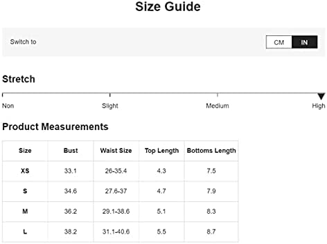 X-Small: Bust: 33.1″, Waist Size: 26-35.4″, Top Length: 4.3″, Bottoms Length: 7.5″, Small: Bust: 34.6″, Waist Size: 27.6-37″, Top Length: 4.7″, Bottoms Length: 7.9″, Medium: Bust: 36.2″, Waist Size: 29.1-38.6″, Top Length: 5.1″, Bottoms Length: 8.3″, Large: Bust: 38.2″, Waist Size: 31.1-40.6″, Top Length: 5.5″, Bottoms Length: 8.7″