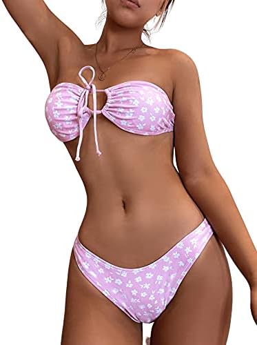 Feature: Floral print, wireless bra, bandeau bikini, fashionable