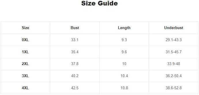 XX-Large Plus: Bust: 37.8″, Length: 10″, Underbust: 33.9-48″,