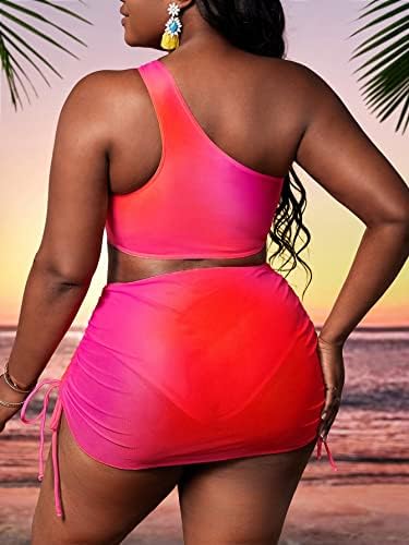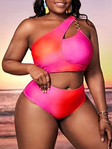 Feature: One shoulder, cut out, chain, high waist bikini, drawstring side beach skirt cover ups, fashionable
