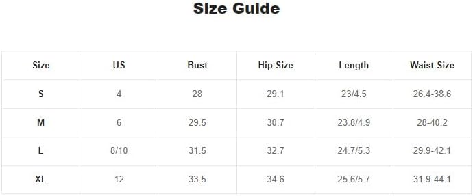 X-Large: Bust: 33.5″, Hip Size: 34.6″, Length: 25.6/5.7″, Waist Size: 31.9-44.1″