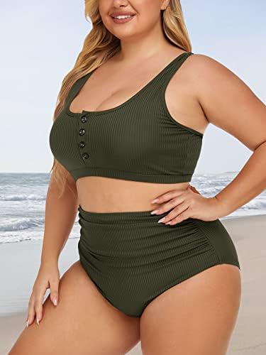 ใRIBBED PLUS SIZE BATHING SUITใThis two piece plus size bikini swimsuit with a sexy bikini top and high waist bikini bottom features ribbed knit fabric that makes you soft and comfortable to wear. The unique sporty push-up bikini set makes you charming and stand out in the crowd.
