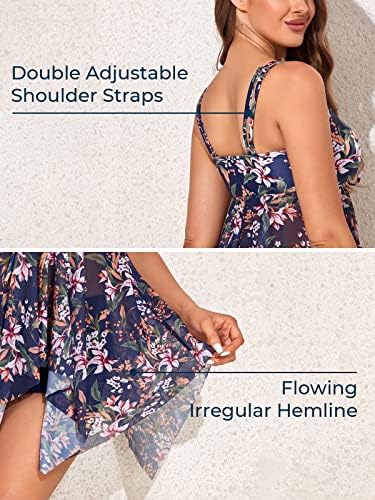 【MESH FLOWY SWIMDRESS】This floral printed tankini swimsuit has adjustable classic back shoulder straps, a tie-knot front design, and a removable and replaceable soft padded bra, which can give you extra support and shape.