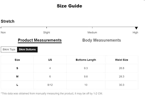 Medium: Bottoms Length: 10.4″, Waist Size: 29.5-38.6″, Top Length: 6.5″, Bust: 28.3″, Underbust: 26-34.6″