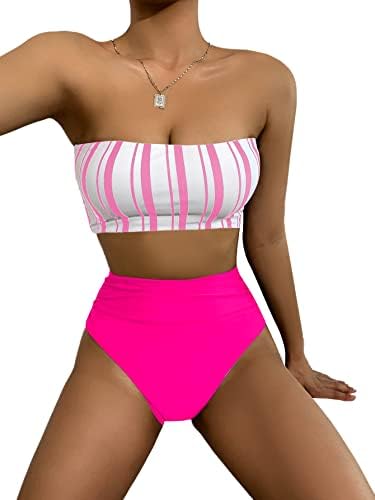 Features: Bandeau, stripe, pading bra, high waist, two piece swimsuits.