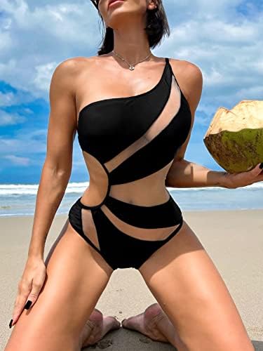 โPatchwork One Piece Bath Top: Sheer one shoulder one piece swimsuits features the mesh patchwork and see through cut out style, comfy wide shoulder strap. Backless one piece swimsuit and classic slimming cut.Slightly padded, support your breast.