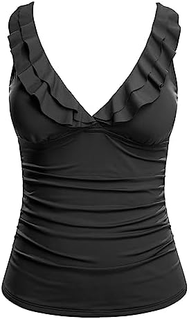 Tankini Tops for Women Swimwear Top Only: Black bathing suit tank top is made of elastic, breathable, soft, smooth and quick-drying fabric. Modest swim top offers good coverage and can easily match different bottoms.