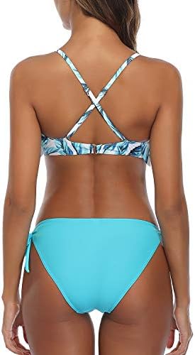 Tempt Me Two Piece Flounce Bikini Side Tie Bottom Padded Ruffled Top Swimsuit for Women Cross Back Bathing Suit