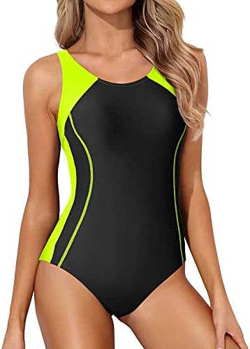 This contrast side splicing athletic one-piece swimsuit is so flattering and appropriate for women, teens, girls, juniors, ladies, and moms for swimming workouts at the gym.