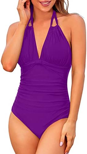 Tempt Me Women One Piece Swimsuits Tummy Control Halter Bathing Suits Sexy Ruched Slimming Swimwear