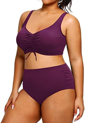 Drawstring Shirred Swimsuit: This two piece bikini swimsuit features a drawstring bikini top and a side ruched bikini bottom, which provide you with a charming and glamour look.