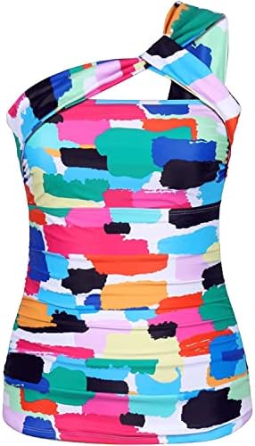 Tempt Me Women Tankini Top Swim Tops Ruched One Shoulder Bathing Suit Swimsuit Tops Only
