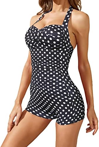 One Piece Tummy Control Bathing Suit: The ruched design gives you full coverage while also being sexy and modest. This one-piece swimsuit with shorts accentuates your curves, making you look slimmer.