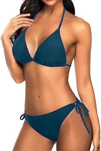 Tempt Me Women Two Piece Halter Padded Top Tie Side Bottom Triangle Bikini Bathing Suit