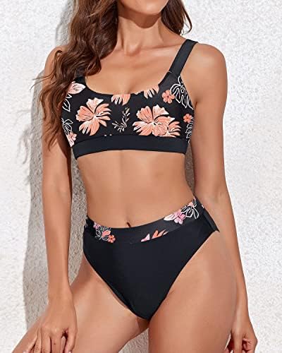 Black 2-Piece Bikini Swimsuits: The sporty scoop neck bikini tops come with adjustable shoulder straps and a removable padded bra, providing excellent support.