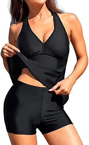 Boy shorts tankini set offers you full coverage, which adds a feeling of vitality to this sporty two piece bathing suit, modest yet still pretty flattering.