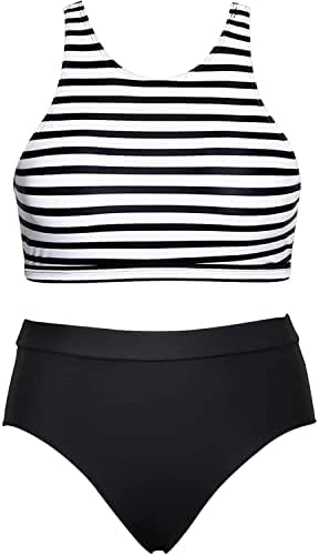 Sporty Swimsuits for Women: The high-neck bikini top has a cutout back with an adjustable strap, and the removable padded bras provide excellent support. The full-lined details will not be seen through.