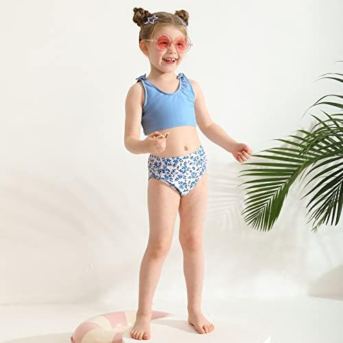 Design: Toddler girls bikini top is design with two bows, made it more adorable. Bikini bottom features with vivid printing pattens, that will make your girl more gorgeous. Full rear coverage. It is an ideal choice for little girlsโ swimwear.