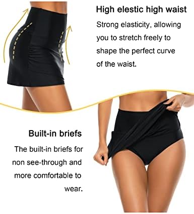 ➀Designs: High waisted design hide imperfections, tulip hem design and side shirred design make you more flattering, soft and stretchy fabric make this skirt comfortable for you to wear, pro-skin built-in briefs protect your privacy.