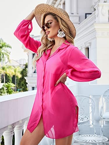 Verdusa Women’s Button Front Cover Up Puff Sleeve Blouse Sheer Swimsuit Kimono Shirts