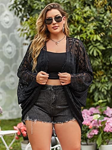 Verdusa Women’s Plus Size Hollow Out Sheer Long Sleeve Loose Kimono Cover Up Cardigan
