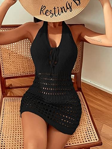 Feature: Halter Neck, Sleeveless, Open Back, Knot Front, Hollow Out, Cover Up Dress