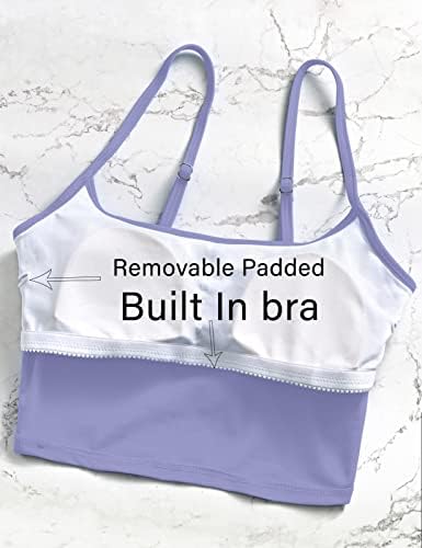 Crop Tank Longline Bikini Tops for Women. This longline bikini tops features designed with Adjustable spaghetti strap, scoop neck, Cami crop top, full coverage style, removable push up padded and double layer, Shelf in bra has soft molded cups and elastic under the bust for support about the athletic two pieces bikini set.