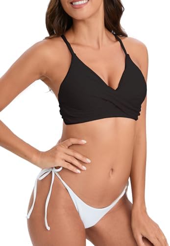 Women Twist Front Bikini Top Criss-Cross Back Bathing Suit Swim Top Tie Straps Swimsuits Padded Top Only