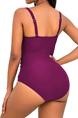β€οΈ 1 Piece Bathing suits for women, with Ruffled Deep V Neck, Pull-on styling, Adjustable Straps, moderate bottom coverage, fashion Shirred Tummy Control design.