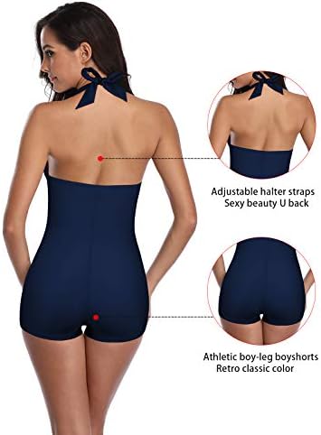 Women’s Retro Halter Bathing Suits Vintage One Piece Swimsuit for Women Tummy Control Plus Boy-Leg Ruched Push up Swimsuit